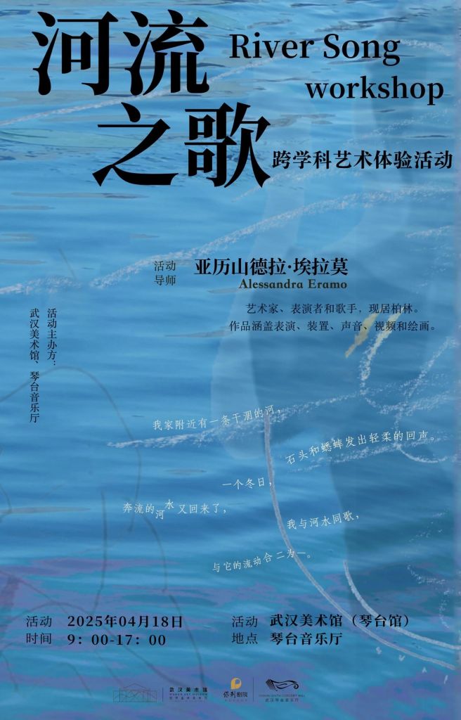 Il Wuhan Art Museum, in collaborazione con il Qintai Concert Hall, ha invitato l’artista italiana Alessandra Eramo a condurre l’esperienza artistica interdisciplinare “Il canto del fiume”. Insieme a circa 150 partecipanti, tra appassionati d’arte e studenti e docenti dell’Accademia di Arte Sperimentale e della Facoltà di Pittura della Hubei Institute of Fine Arts, l’artista ha guidato una serie di pratiche immersive e interdisciplinari.Attraverso improvvisazione vocale, scrittura di testi, ascolto e dialogo tra suono e immagine, nonché osservazione ecologica, i partecipanti hanno esplorato la “memoria ecologica” del fiume Yangtze e il suo rapporto di coesistenza con la vita urbana contemporanea.